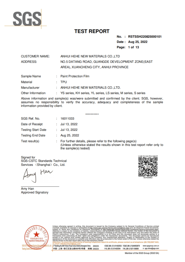 - ✓ Quality Assurance: These certifications are third-party verification of our commitment to excellence in the development and production of car wrap products.
