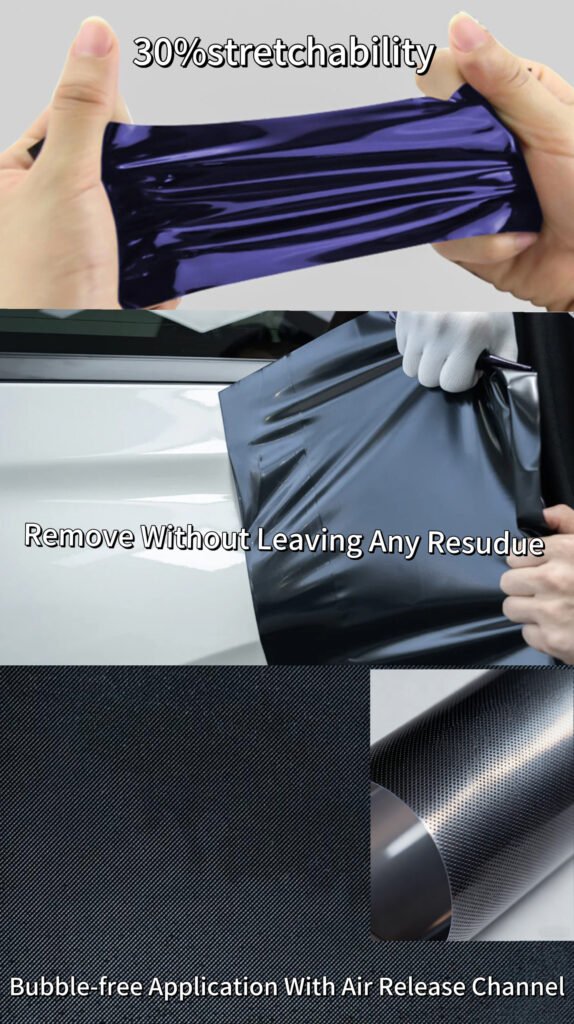 - Car wraps and PPF use low-tack adhesive that peels off cleanly (no residue left). All films have undergone compatibility testing with OEM paint to ensure no discoloration or damage.
